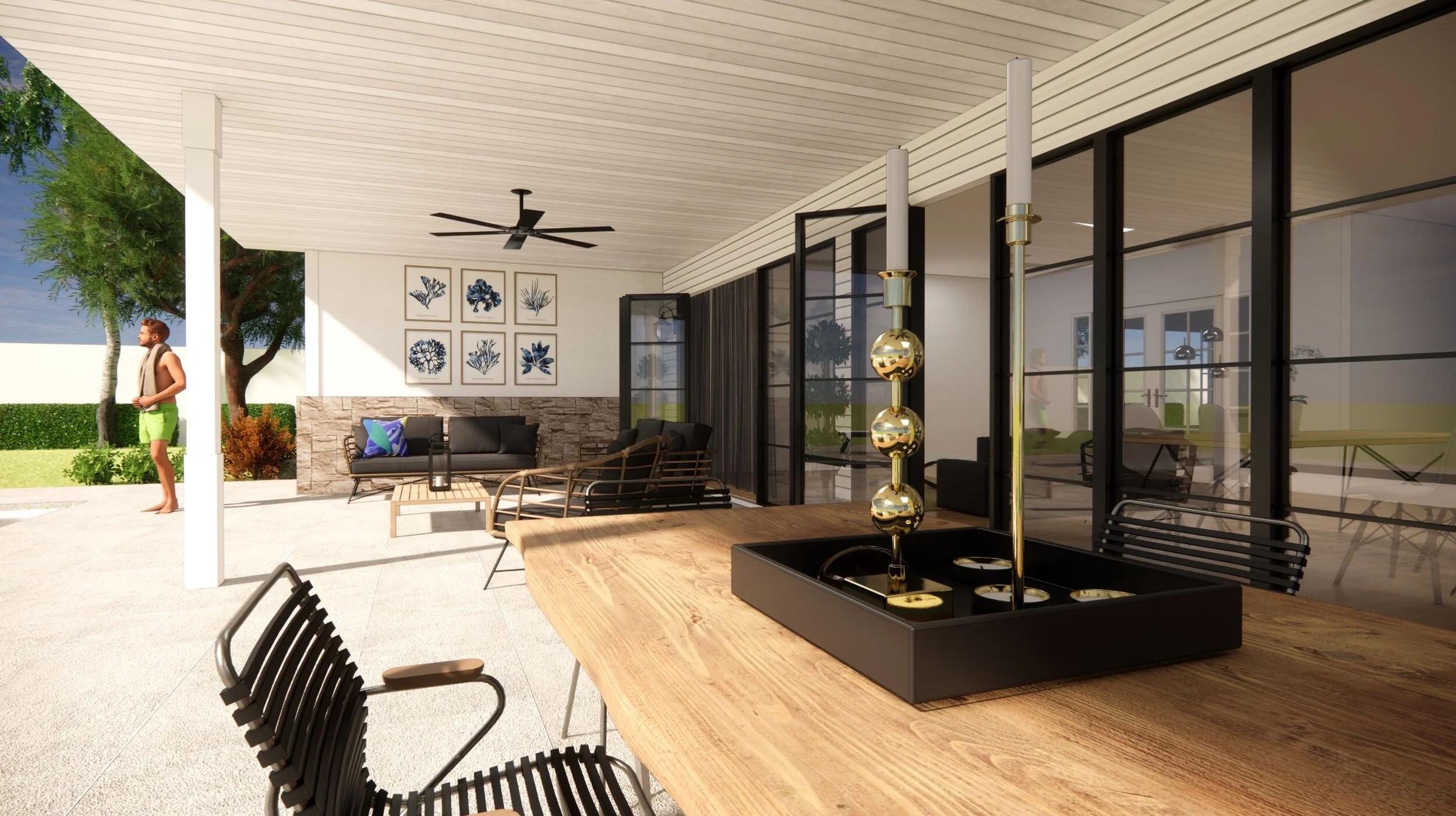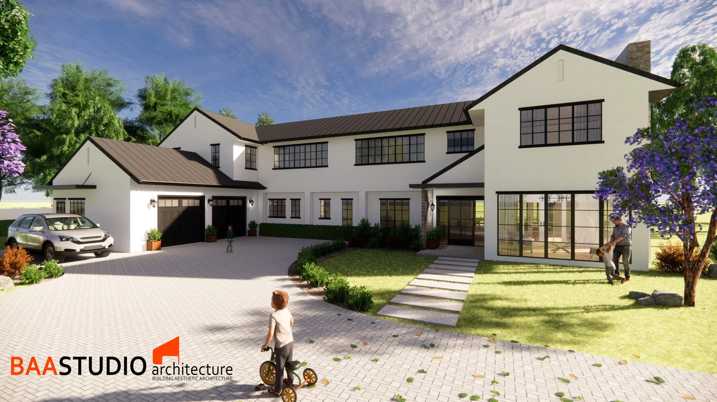 Design Brief: To design a new home that is functional and aesthetic inspired by the American Farmhouse style. A floor plan where the rear of the house opens up to a courtyard and pool. Seamless transition from indoor to outdoor living, high ceilings and light to promote space.